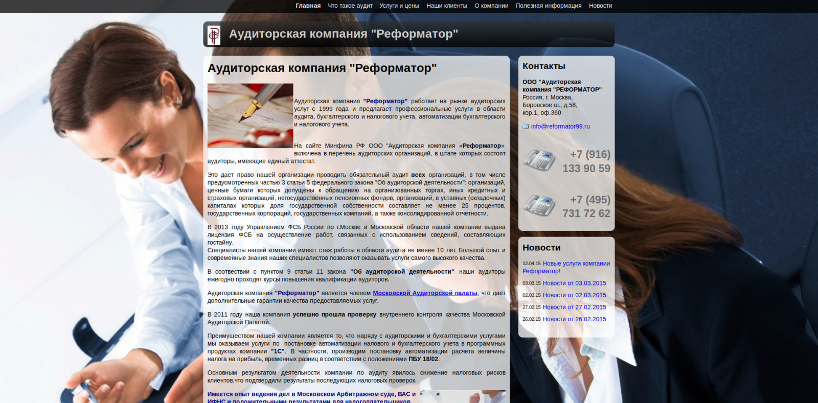 Аудиторская компания "Реформатор" работает на рынке аудиторских услуг с 1999 года и предлагает профессиональные услуги в области аудита, бухгалтерского и налогового учета, автоматизации бухгалтерского и налогового учета.