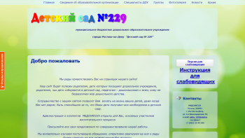 Сайт посвящен работе Детского сада № 229. Приведены расписания занятий, информация о коллективе, группах, а также нормативно-правовые документы МБДОУ№229.