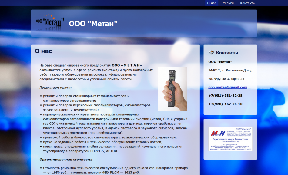 На базе специализированного предприятия ООО "МЕТАН" оказываются услуги в сфере ремонта (монтажа) и пуско-наладочных работ газового оборудования высококвалифицированными специалистами с многолетним успешным опытом работы.