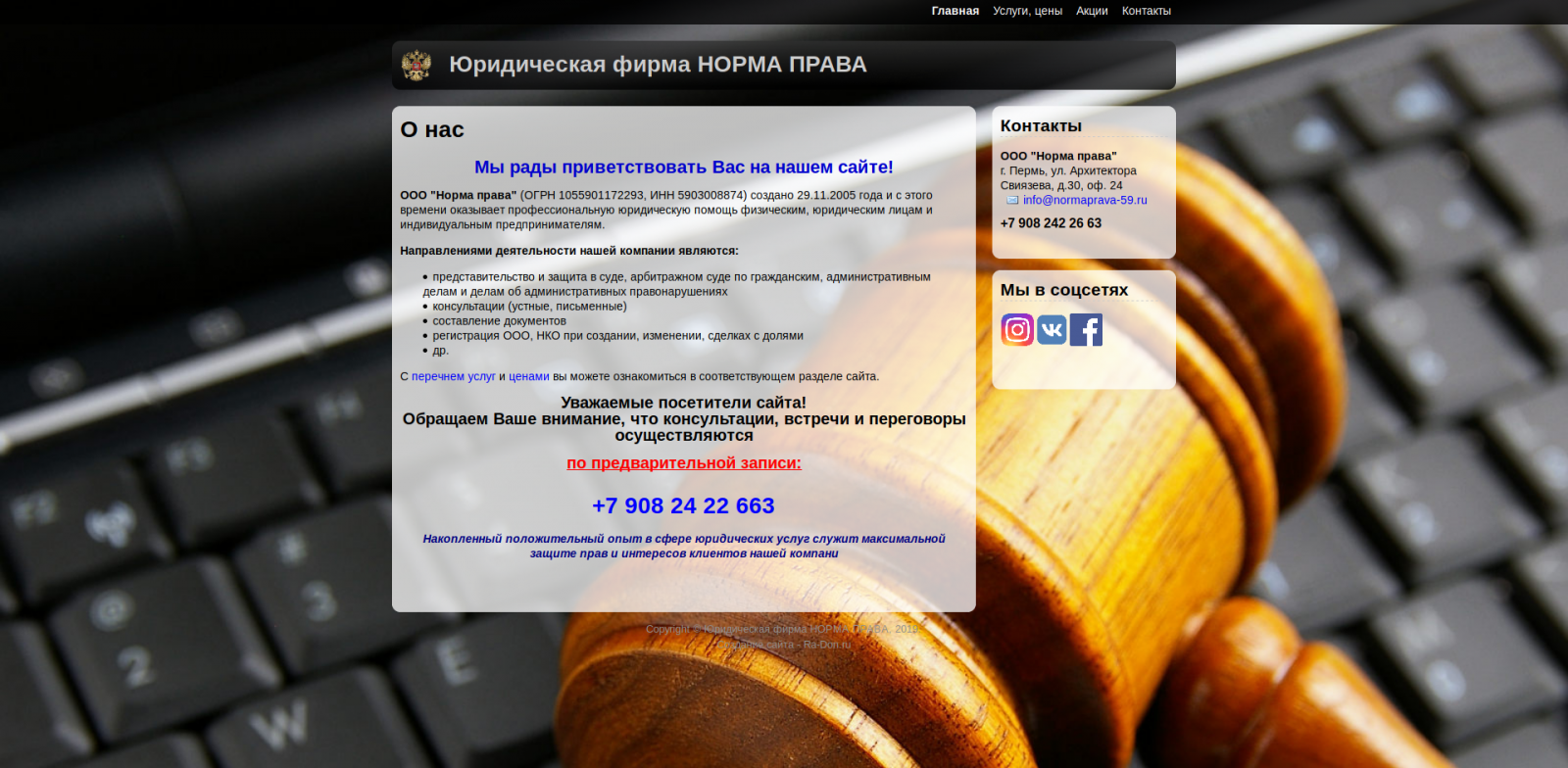Сайт юридической фирмы. Юридическая фирма ООО "Норма права" оказывает широкий спектр юридических услуг организациям, предпринимателям, физическим лицам.