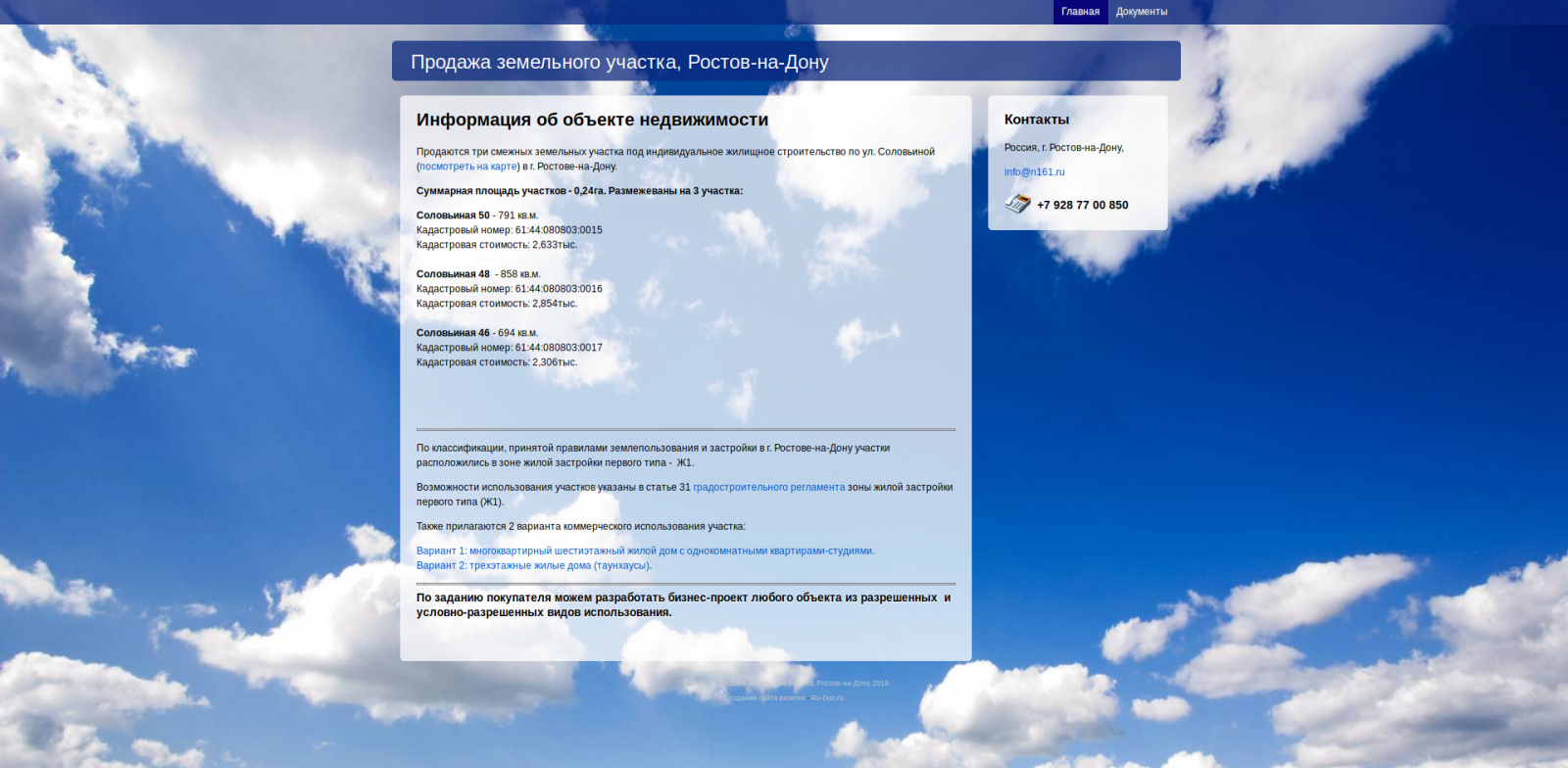 Сайт о продаже трех смежных земельных участка под индивидуальное жилищное строительство в г. Ростове-на-Дону.