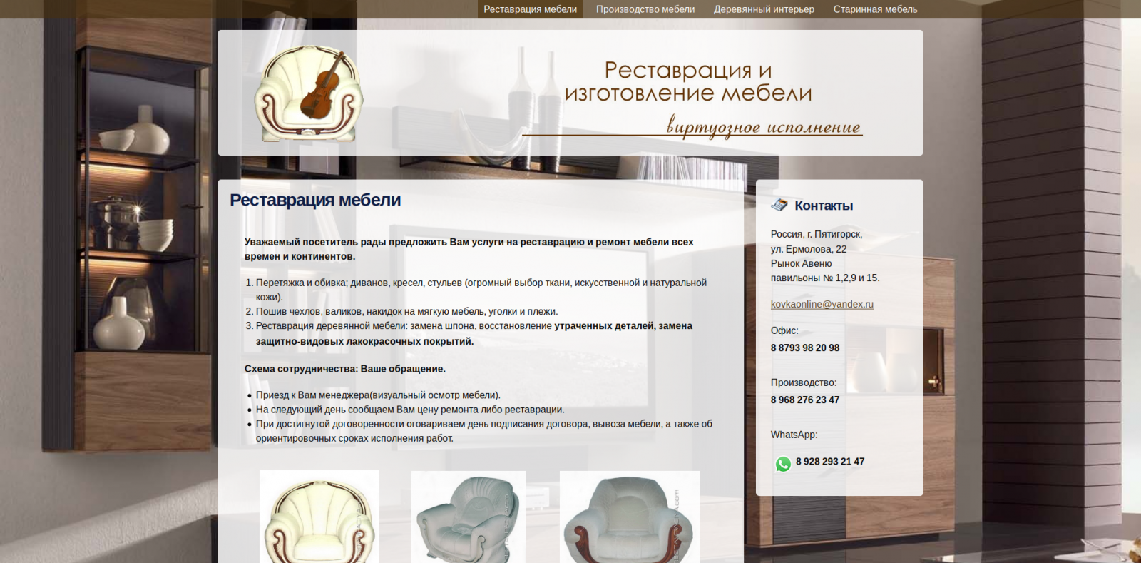 Сайт компании предоставляющей услуги на реставрацию и ремонт мебели всех времен и континентов.
