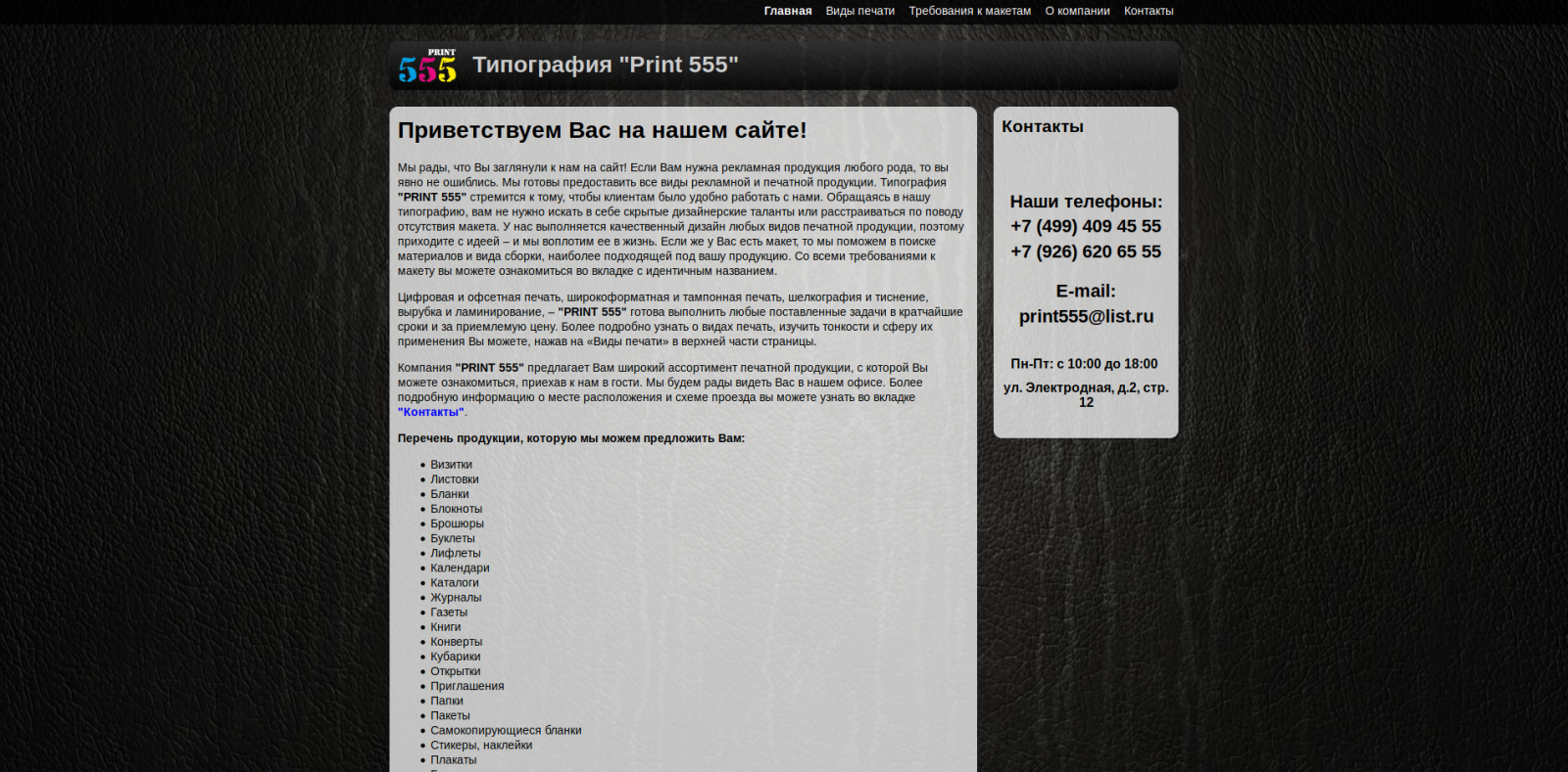 Все виды рекламной и печатной продукции на сайте типографии "PRINT 555".