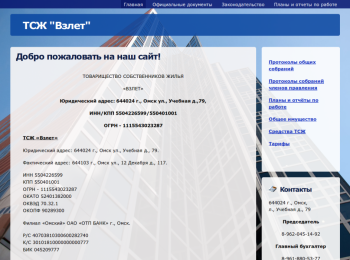 Официальный сайт товарищества собственников жилья "Взлет". На сайте приведены документы ТСЖ, тарифы, показания, предложения и т.д.