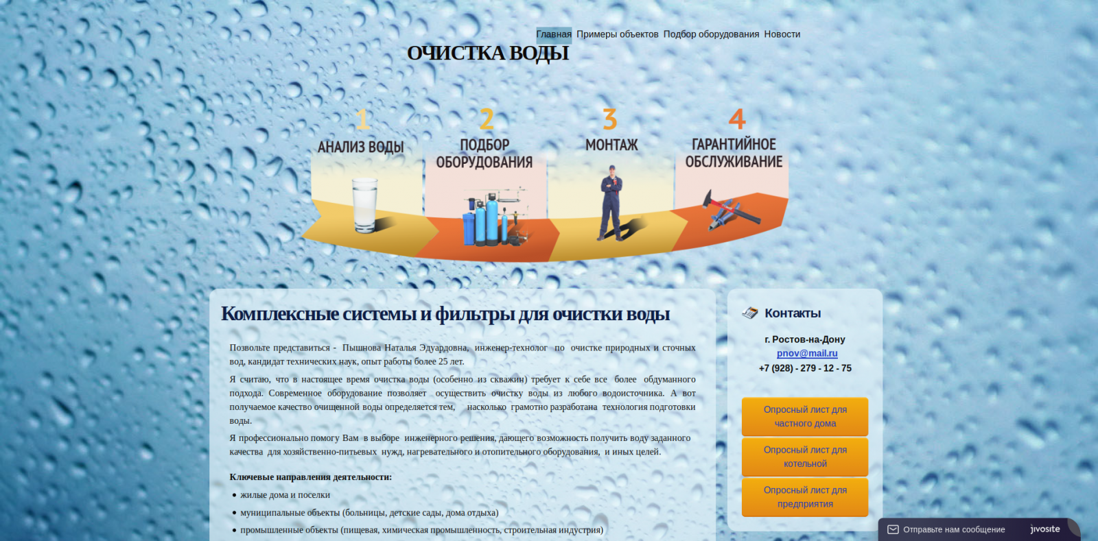 Сайт компании, поставляющей комплексные системы и фильтры для очистки воды.