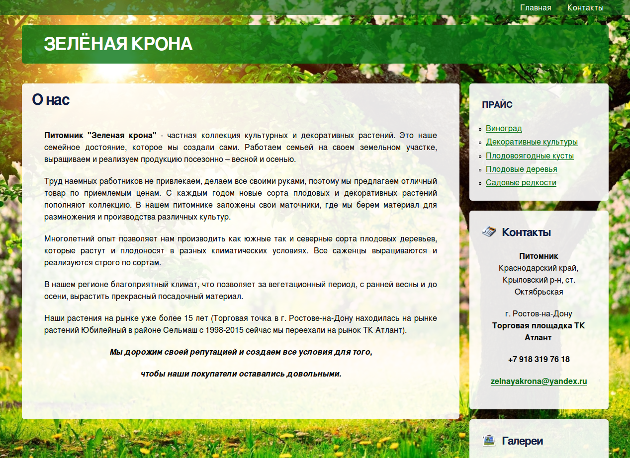 Питомник "Зеленая крона" - частная коллекция культурных и декоративных растений. Широкий ассортимент продукции: